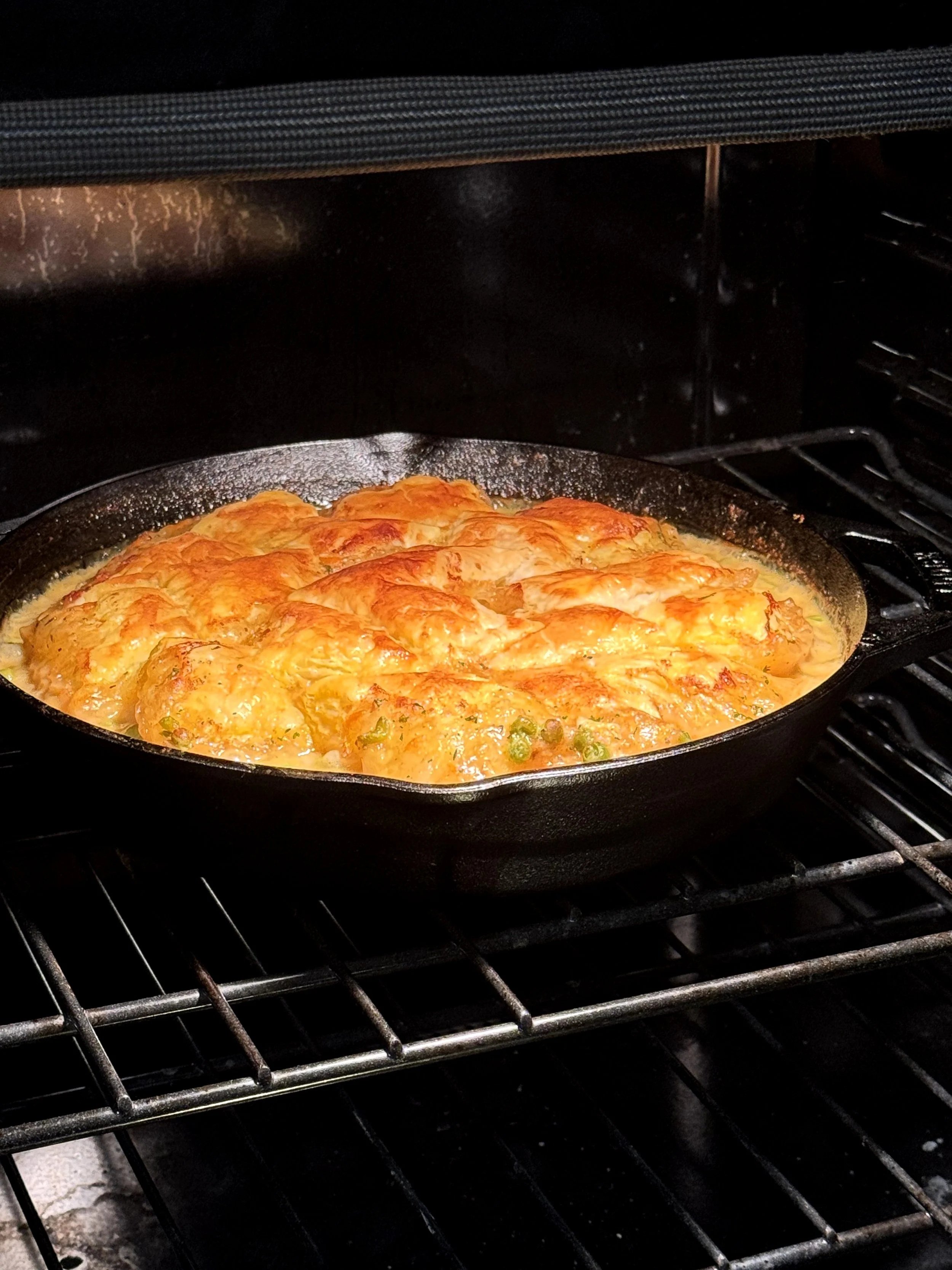 Step 7: Bake at 390 degrees for about 20 minutes until puff pastry is golden brown. Allow to rest for 5-10 minutes so the mixture can set up. Scoop and serve.