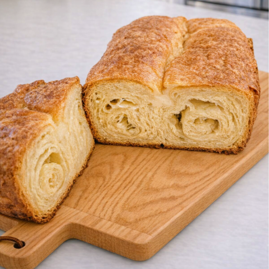 Step 3: Roll each of the dough sections back up. Place both rolls side-by-side, seam side down in a well greased bread baking pan.