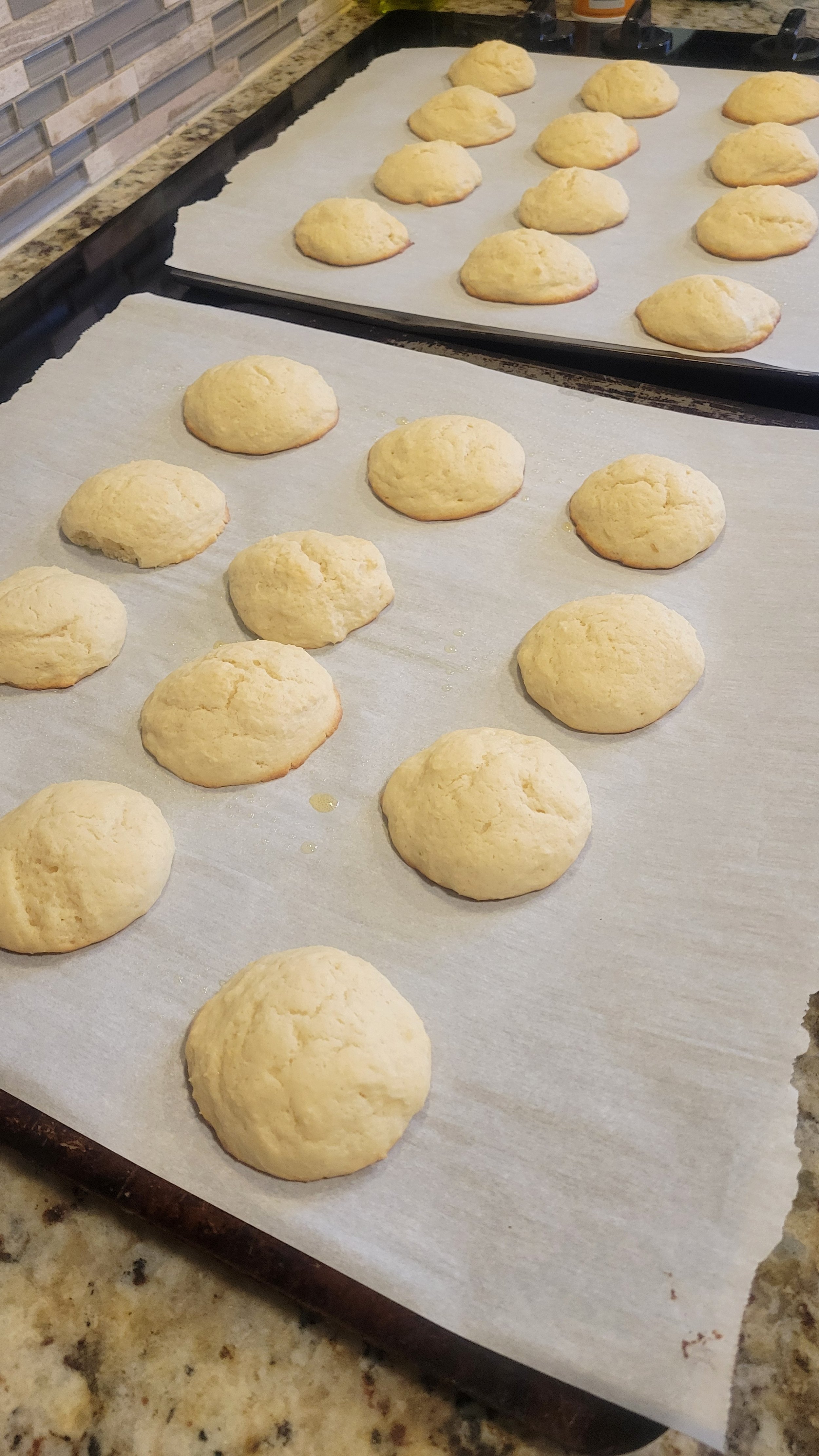 Step 6: Bake for 12-14 minutes or until the bottom of the cookie starts to brown slightly. (The cookies will not change color much). Cool on pan for 5 minutes before moving to wire rack to cool completely.